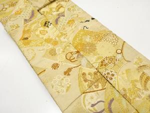 アンティーク 読み本に鼓・貝桶・草花模様織り出し名古屋帯(材料)