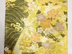 片輪車に枝垂れ桜模様織り出し 振袖用袋帯