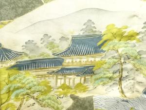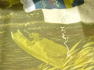 アンティーク 地紙に風景・和歌模様男物長襦袢