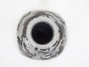 神勝寺窯 藤本明成造 鉄絵花入(清水公照絵付・書付)(共箱)