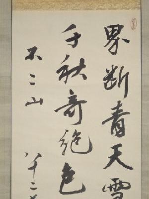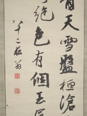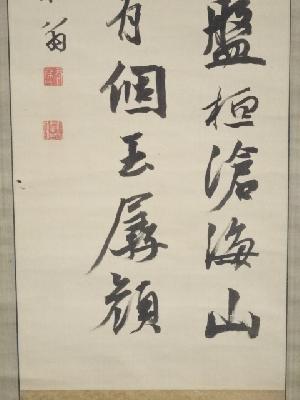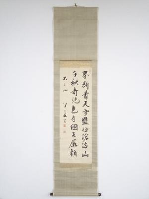 貫名菘翁筆 二行書 肉筆絹本掛軸(箱付)