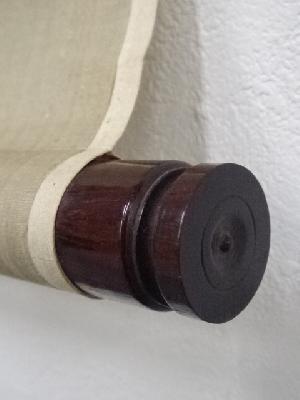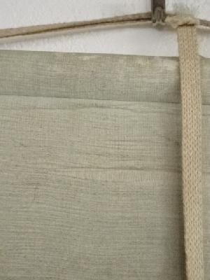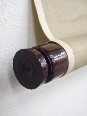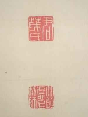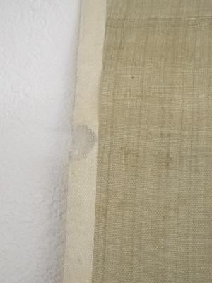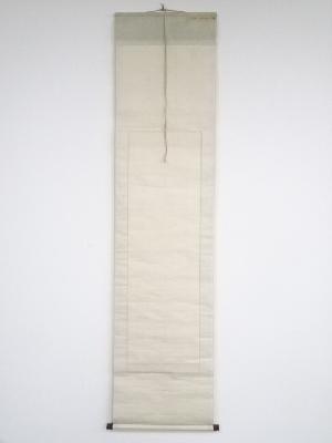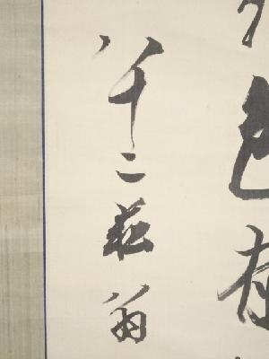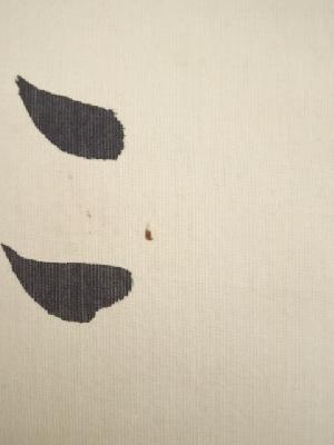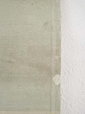 表具に汚れがあり、表具裏に若干のシミ、端に剥がれがあります。
