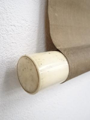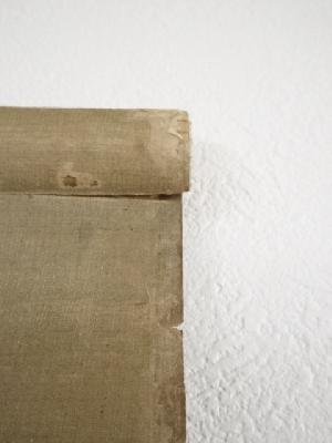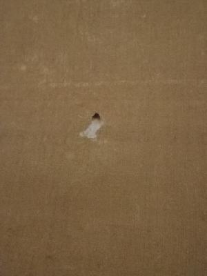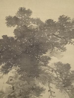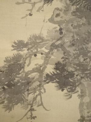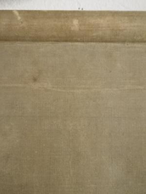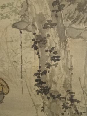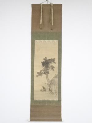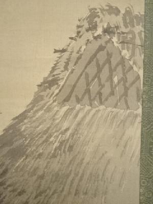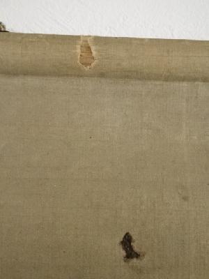 全体に経年汚れがあり、八双、軸棒付近に細かな虫食い、若干の破れがあります。