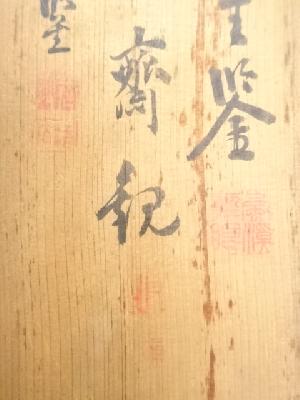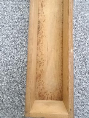 木箱の内側にシミ、木箱蓋にシール跡があります。