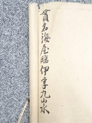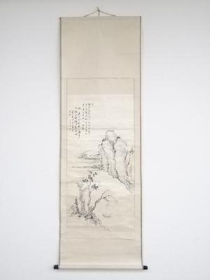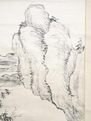 己酉(1849)年 貫名菘翁筆 臨伊孚九山水 肉筆絖本掛軸(保護箱)