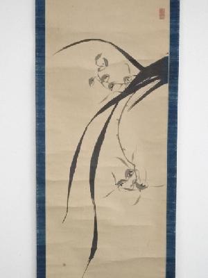 宋紫石筆 蘭図 肉筆紙本掛軸(保護箱)