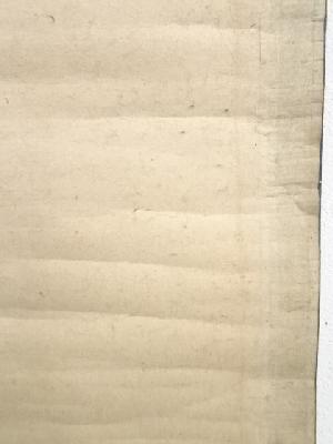 本紙にシミがあり、表具表下部、表具裏上部に汚れがあります。