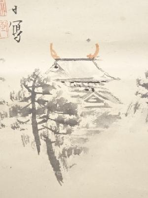 明治19年 野村文挙筆 名古屋招魂祭煙火之図 肉筆紙本掛軸(保護箱)