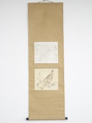 菅美紀(菅楯彦の妻)筆 和歌・筍 肉筆絹本掛軸(内田稲葉箱書)(共箱)