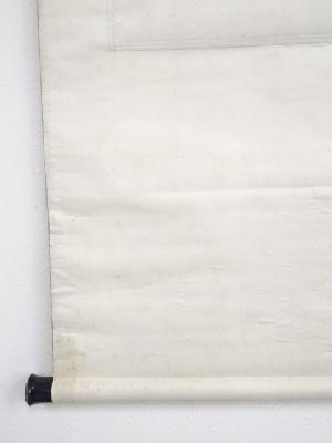 また、本紙に点々とシミがあり、表具と本紙の境目に浮きがあります。