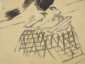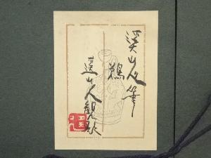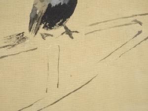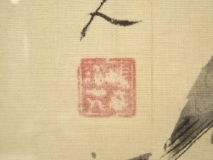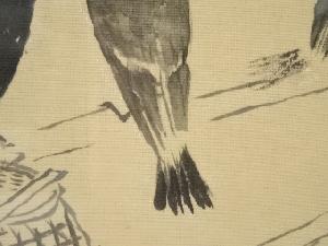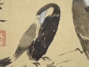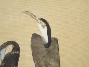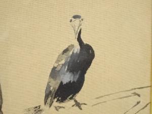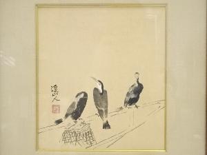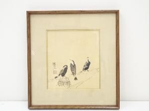 富田渓仙筆 鵜図色紙 肉筆絹本額装(池田遙邨識シール付)