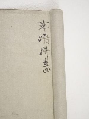 江戸中期頃 北山寒厳筆 岩上観音図 肉筆絹本掛軸(保護箱)