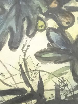 要樹平筆 叢苑晩夏 肉筆紙本掛軸(共箱)