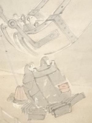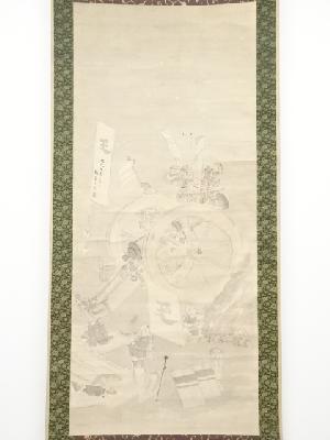 文久元年(1861年) 川崎千虎筆 大砲図 肉筆紙本掛軸(箱付)