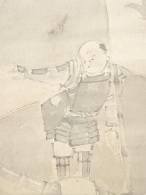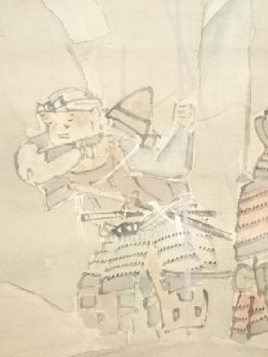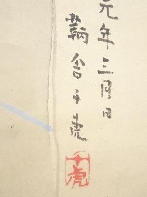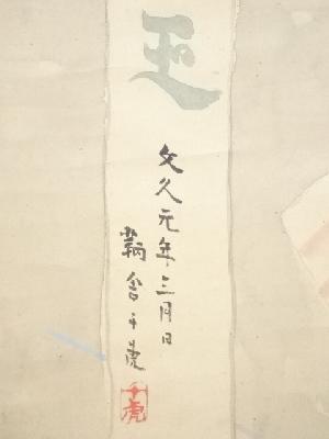 軸棒付近に汚れがあり、八双端に剥離破れがあります。