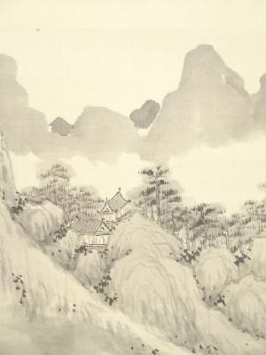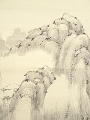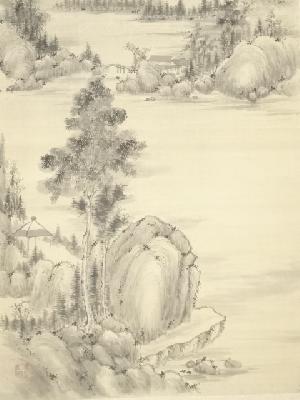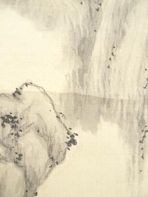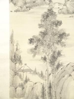 丁巳(1857年) 鉄翁祖門筆 水墨山水図 肉筆絹本掛軸(帆足杏雨箱書)
