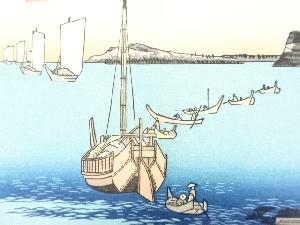 歌川広重 東海道五十三次 神奈川 手摺浮世絵木版画 額装