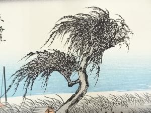 歌川広重 東海道五十三次 四日市 手摺浮世絵木版画 額装