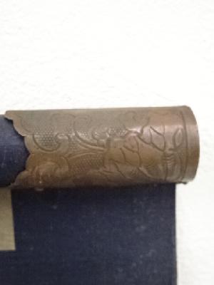 両方の帯部分に書き込みがあり、金具部分に変色があります。