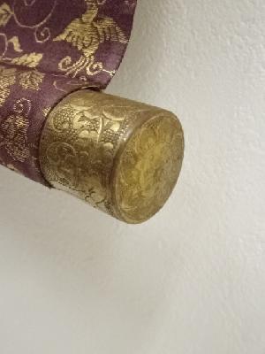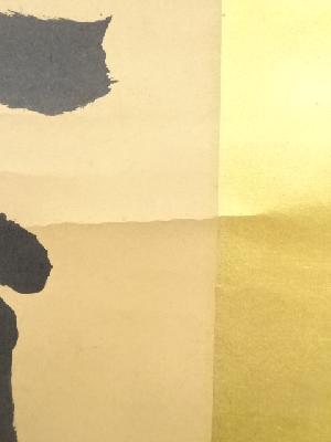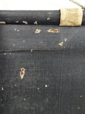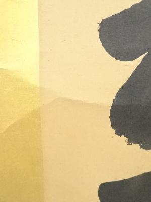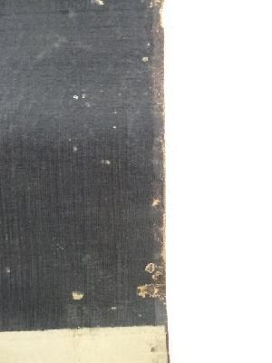 表具裏のところどころにシミがあり、表具裏端などに剥がれがあります。