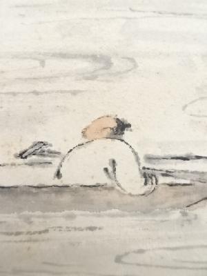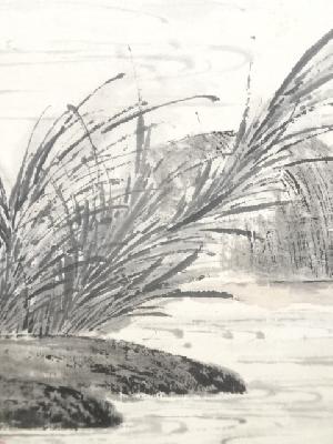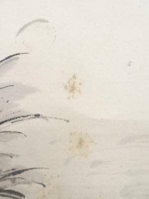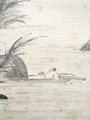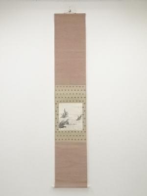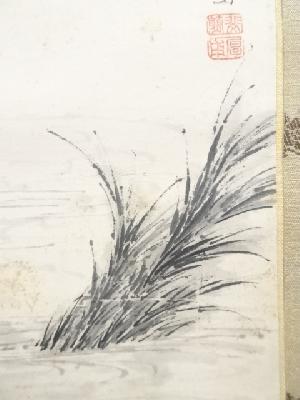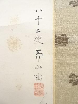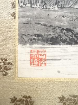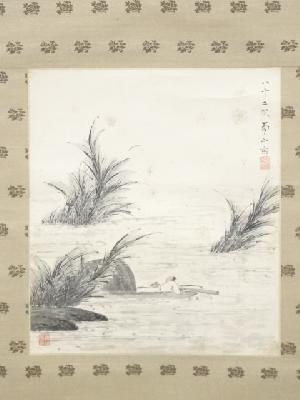 甲斐虎山筆 芦江夜泊図 肉筆紙本掛軸(共箱)
