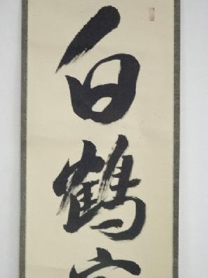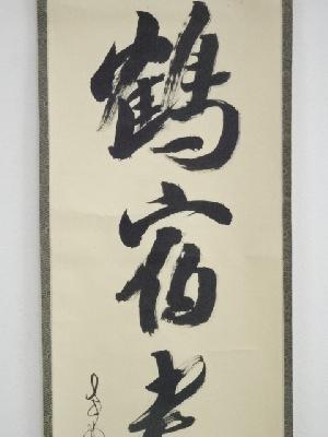 大徳寺立花大亀筆 「白鶴宿老松」一行書 肉筆紙本掛軸(共箱)