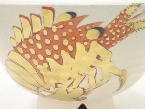 膳所焼 岩崎新定造 海老の絵茶碗(久田家十二代尋牛斎書付)(共箱)
