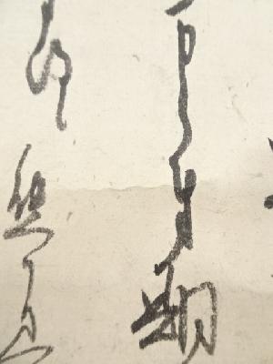全体、主に表具部分に汚れや解れ、経年による割れなど、劣化があります。