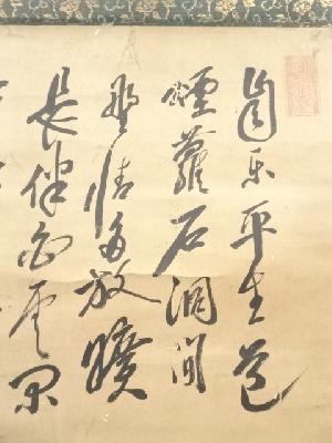 黄檗宗独本性源筆 寒山詩 肉筆紙本掛軸(保護箱)