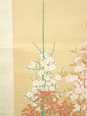 軸棒端に破れがあり、八双や表具上部端などに小さな破れや擦れがあります。