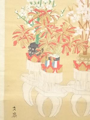 大正(1914)年 前川文嶺筆 春日神社供千切台図 肉筆紙本掛軸(共箱)