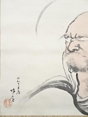 昭和丁丑(1937年) 寺松国太郎筆 達磨 肉筆紙本掛軸(共箱)