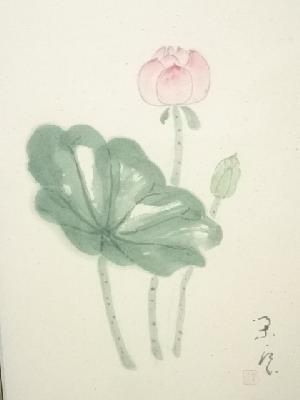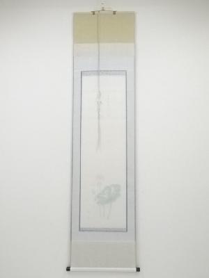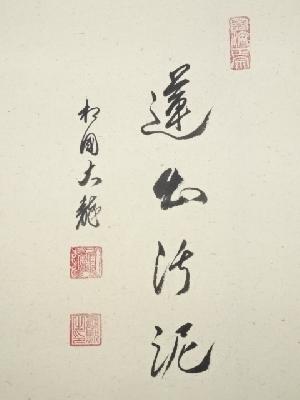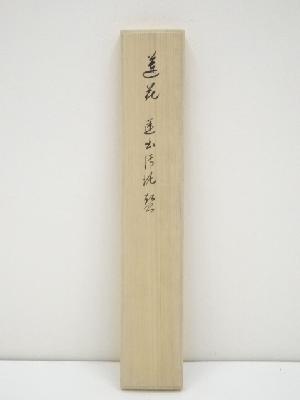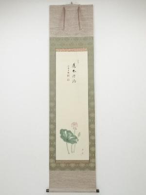 相国寺有馬頼底筆 蓮花図「蓮出汚泥」賛 太巻 肉筆紙本掛軸(共箱)