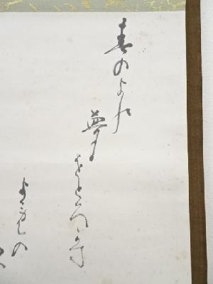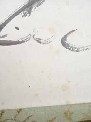 本紙と表具裏の全体に若干のシミがあります。