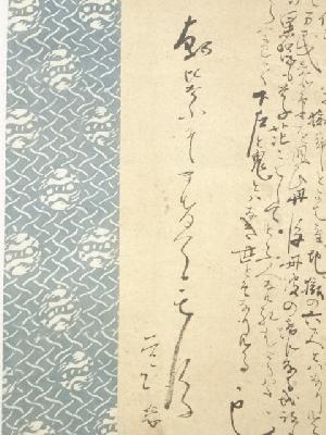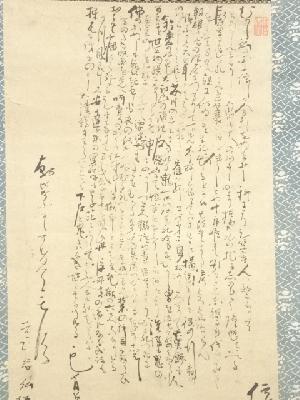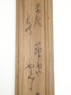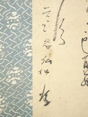 表具表上部に1点汚れがあり、表具裏にシミ、表具裏上部に焼けがあります。