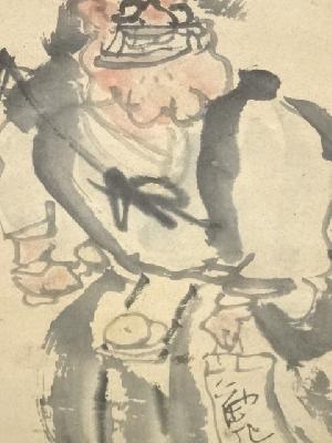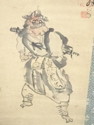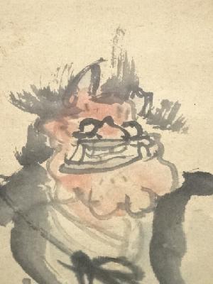 江戸後期頃 信天翁筆 鬼念仏 肉筆紙本掛軸(箱付)