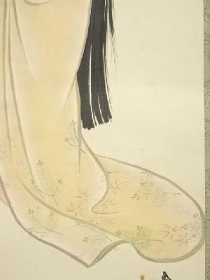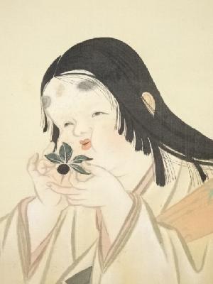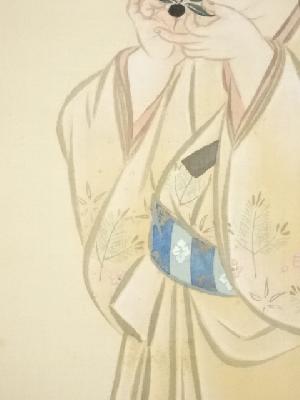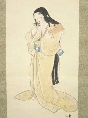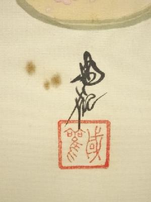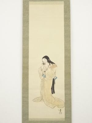尾竹国観筆 冨久図 肉筆絹本掛軸(共箱)