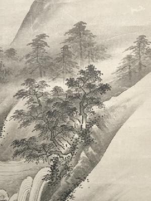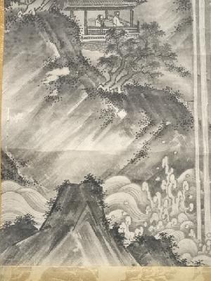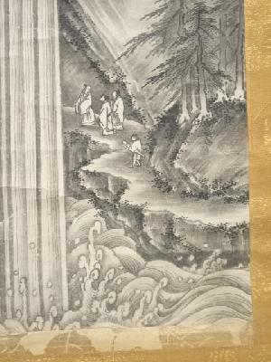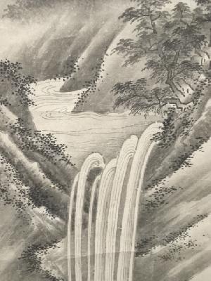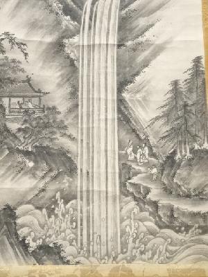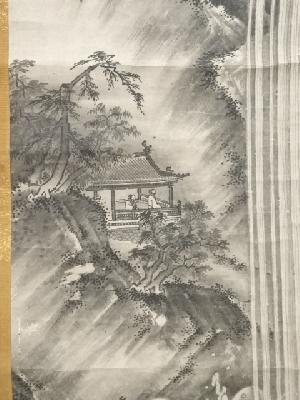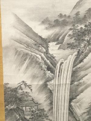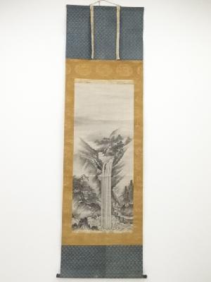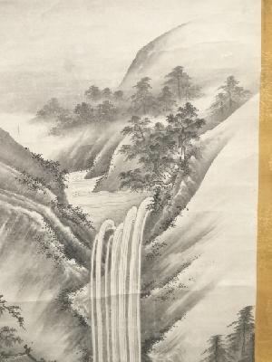 江戸時代前期頃 狩野派 水墨滝山水 肉筆紙本掛軸(二重箱)
