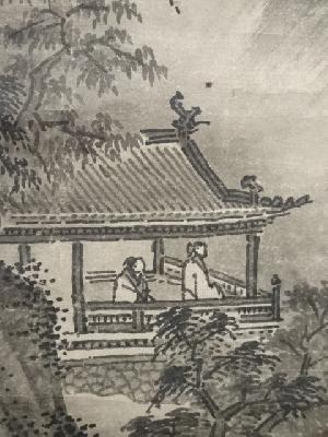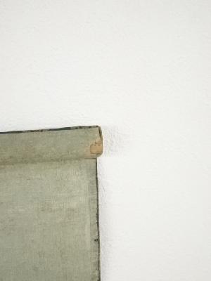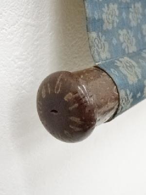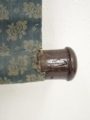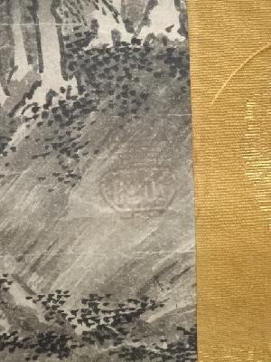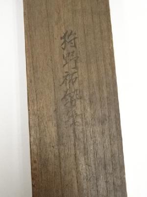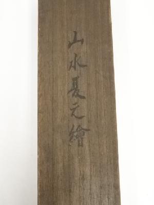 また、裏面全体に焼けがあり、八双に剥がれ、軸棒付近にスレと虫食いがあります。