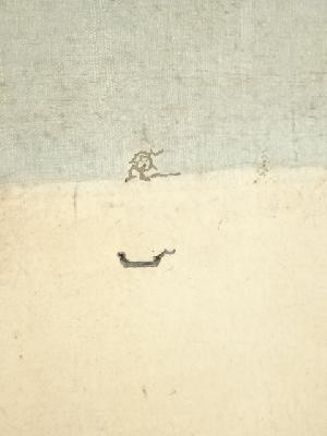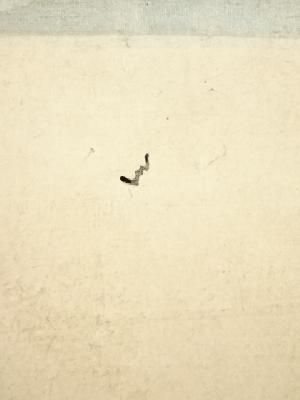 本紙:ところどころにシミ、巻きジワによる折れがあり、上部に破れの補修跡があります。