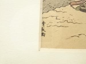 鳥居清長 雪の宮詣り男女 手摺木版画 額装