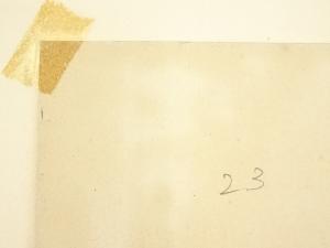裏面に焼けと書き込みがあり、テープが貼られています。