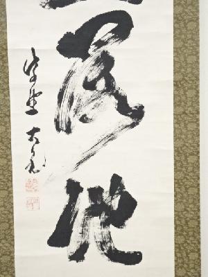 大徳寺立花大亀筆 「虚空落地」一行書 肉筆紙本掛軸(共箱)
