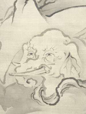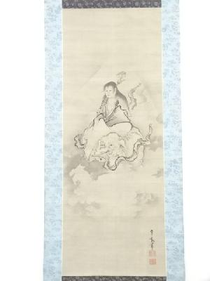 山下守胤筆 普賢菩薩 肉筆絹本掛軸(保護箱)