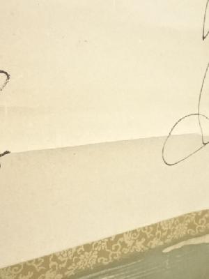 表具表のところどころにシミがあり、表具裏にシミがあります。