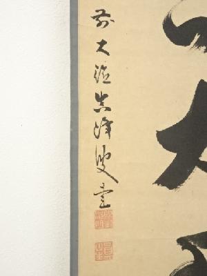 大徳寺434世真峰宗正筆 「小魚呑大魚」一行書 肉筆紙本掛軸(保護箱)