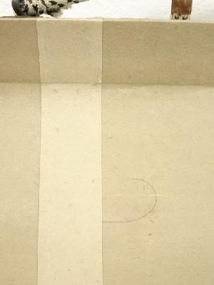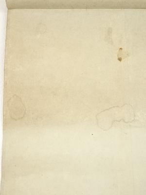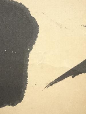 軸棒部分に破れがあり、軸先片方にシミ、もう一方に当たり傷があります。