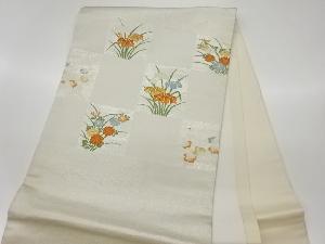 リサイクル 市松に花模様織出し開き名古屋帯(額縁仕立て)