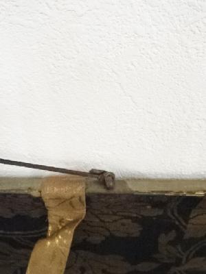 シミがあり、蓋の桟が片方破損しています。