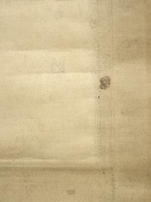 裏:汚れ、シミ、端に折れがあります。